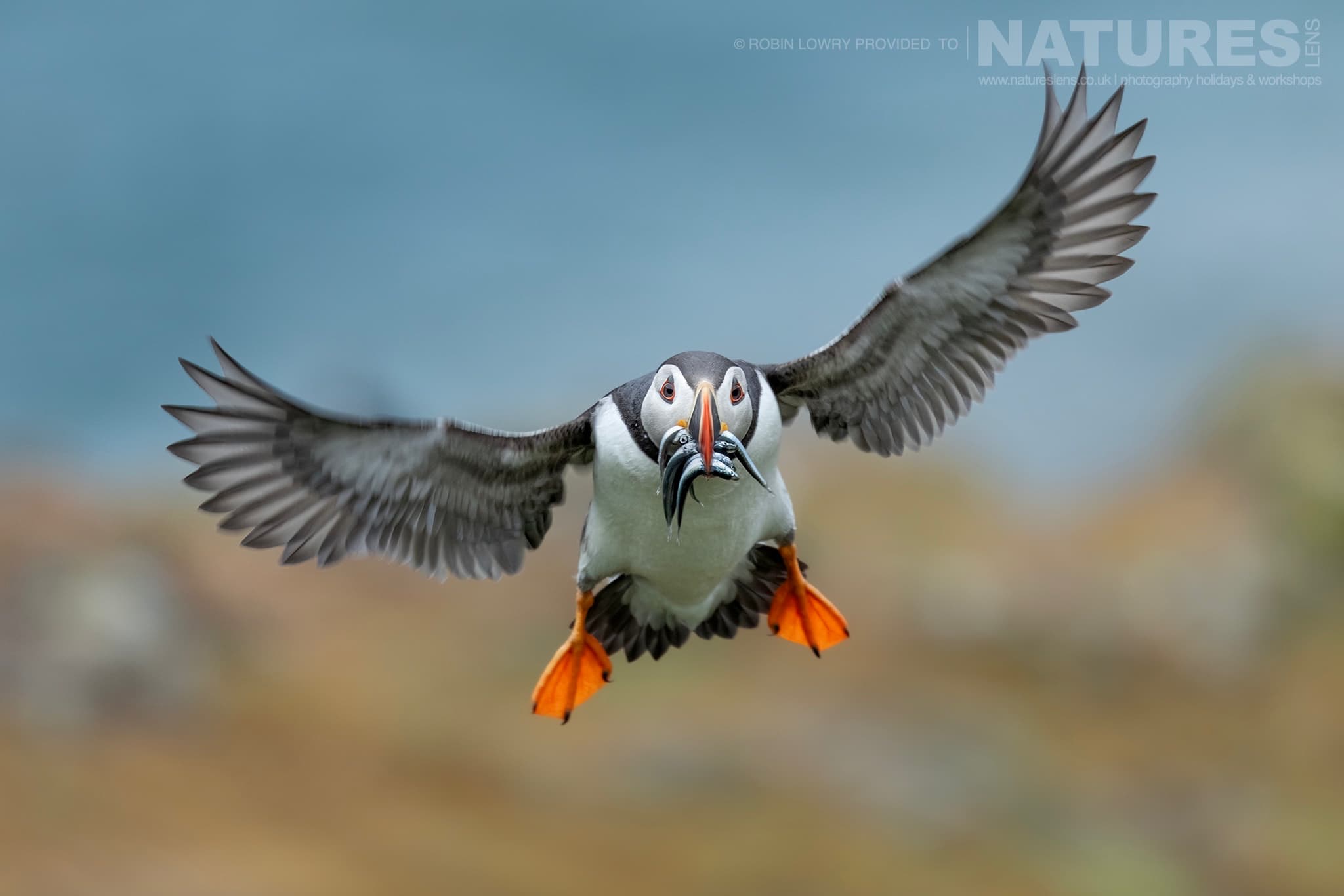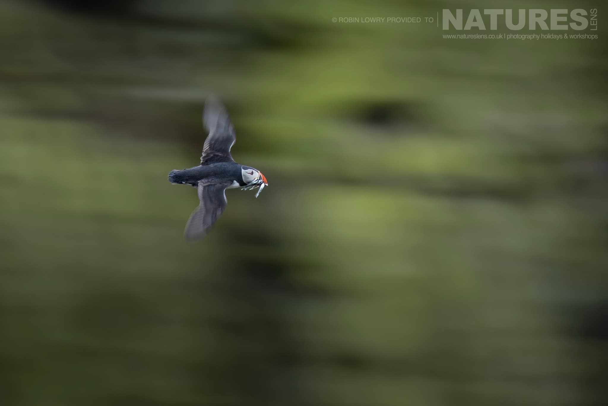 Another attempt to spot the short-eared owl proved fruitless, so we returned to The Wick, only to find the wind had shifted. The puffins were now flying in from High Cliff, their trajectories perfect for in-flight shots.