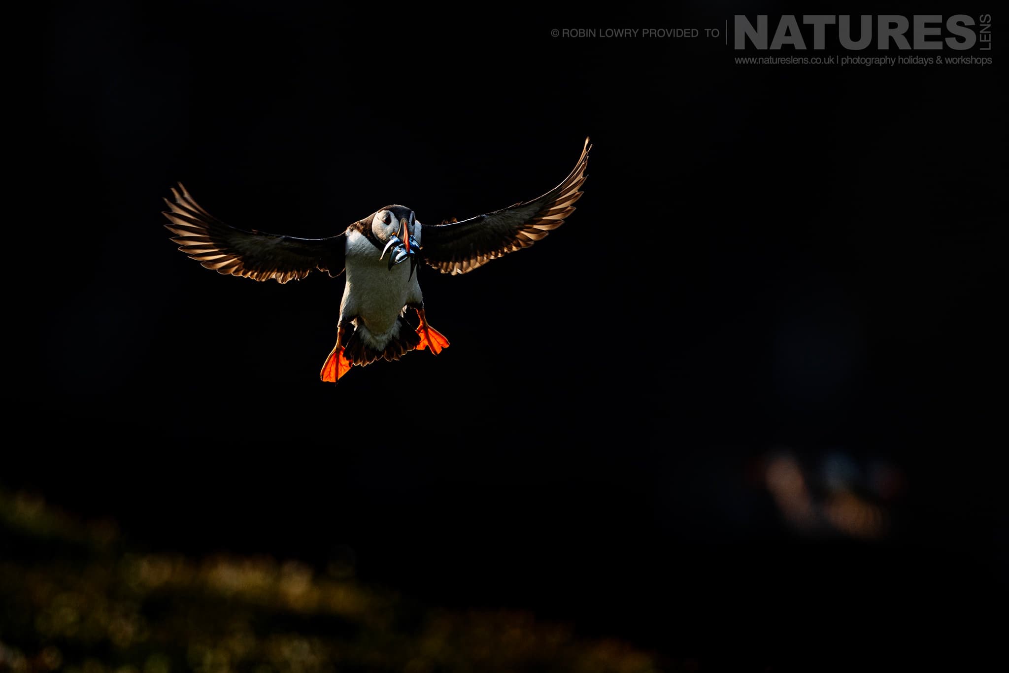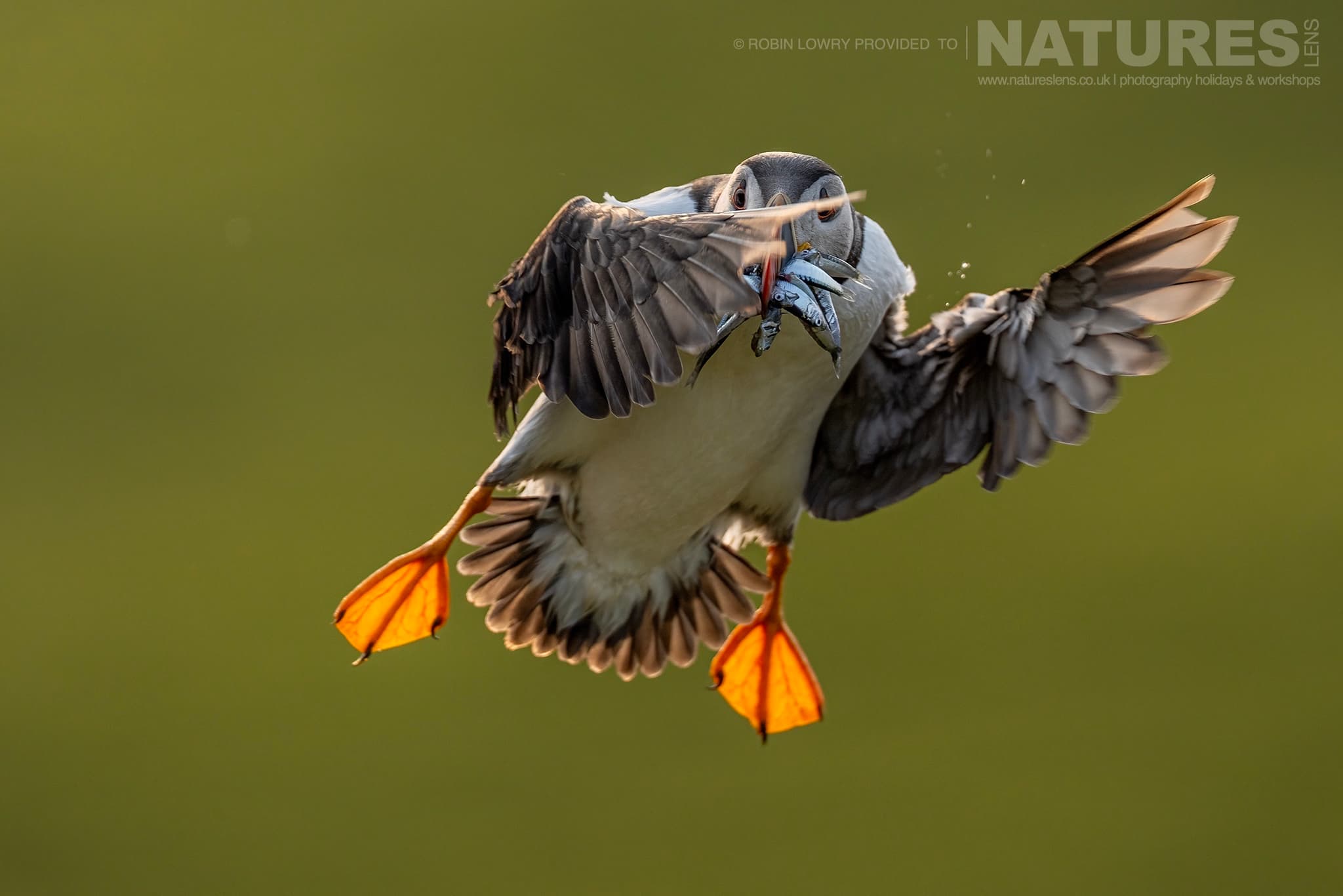 We captured head-on landing shots, their wings outstretched & beaks full of sand eels, alongside striking silhouettes against the brightening sky.