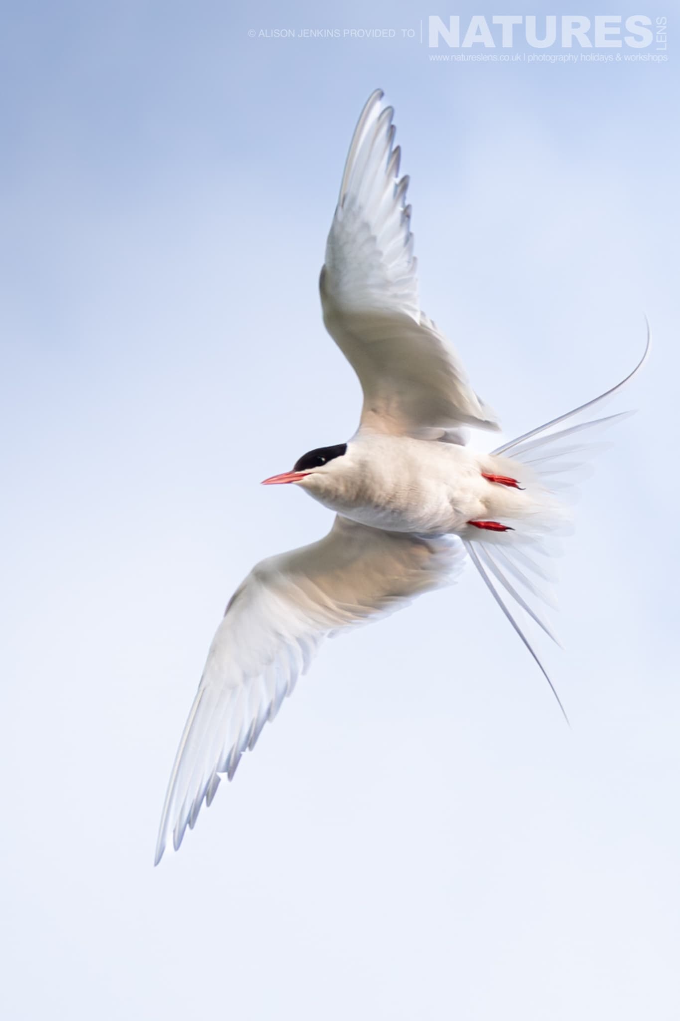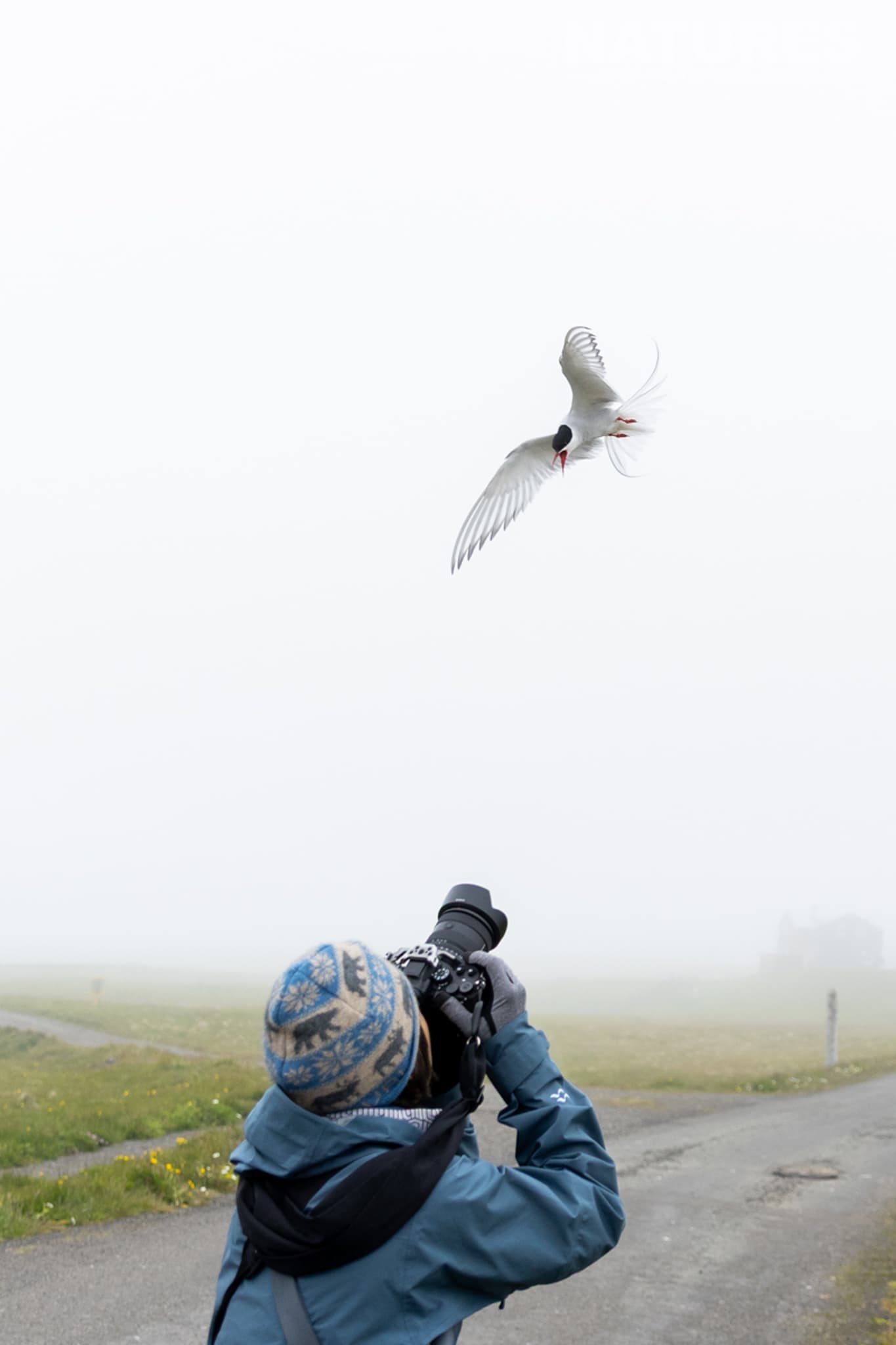 Strong winds transformed the island into a high-speed photography studio. At the cliffs, puffins struggled against the gusts, hovering almost motionless before being blown backwards – like “reverse parking,” as Robin put it. The wind also made Arctic Terns work harder, their acrobatic flights even more dynamic against the clear blue sky.