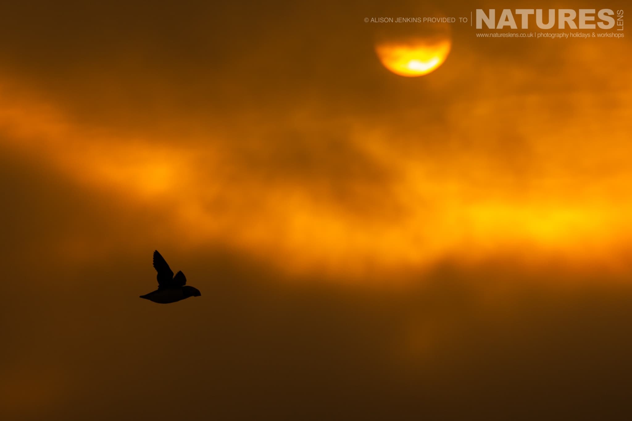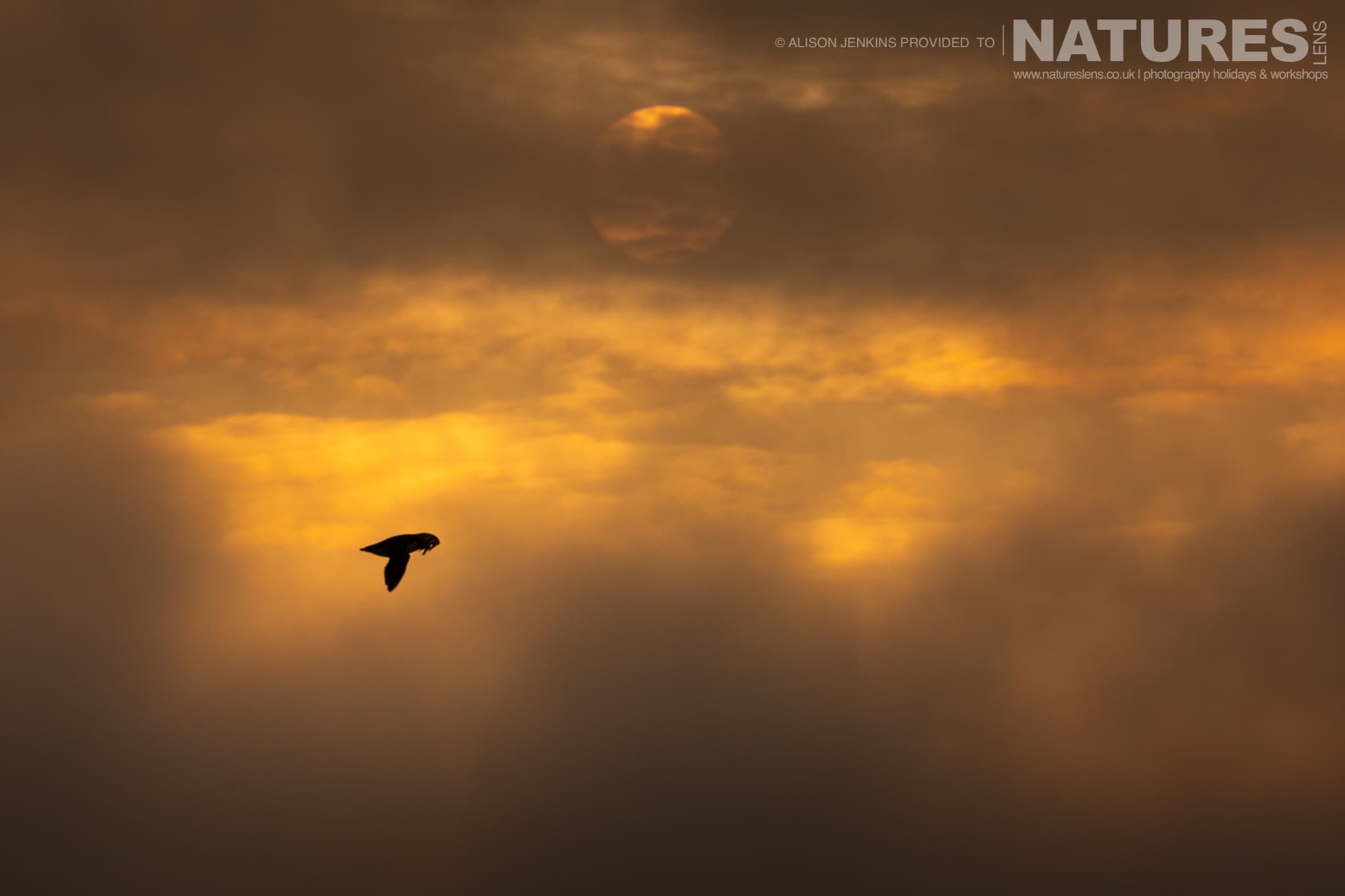 As evening approached, the clouds parted, casting golden beams across the sea. Robin set us a challenge: capture a bird flying across the sun. The resulting backlit shots, with wings glowing against the fiery disc, were spectacular.
