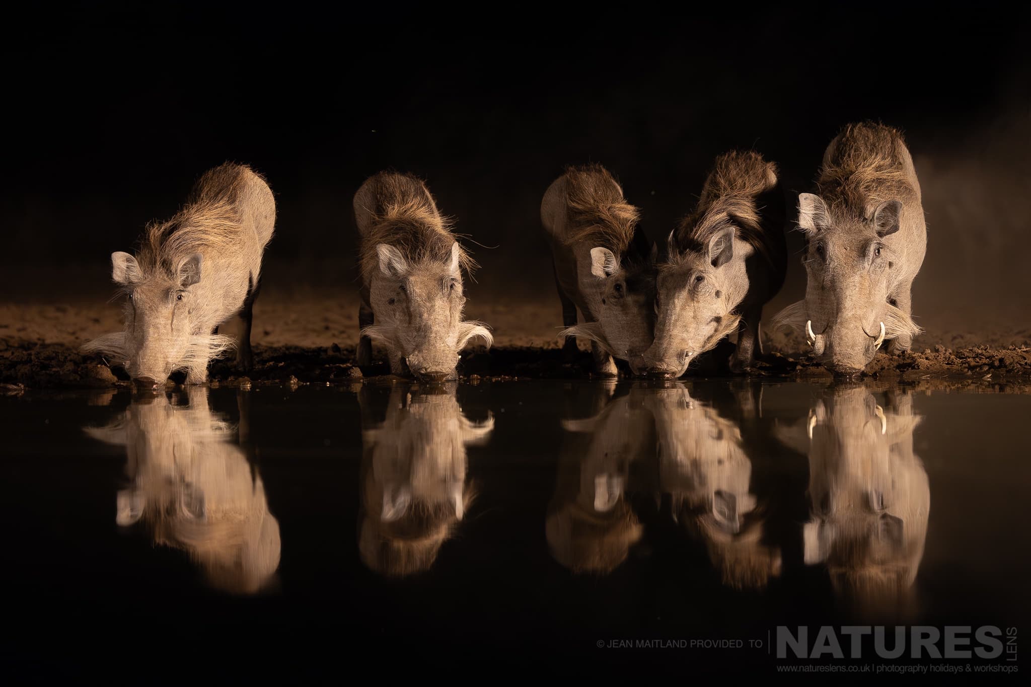 The lighting is installed & balanced for photography, delivering clean colour & manageable contrast at practical ISOs. The Plains Hide’s backlight elevates creativity – rim-lit manes, glowing dust, mirrored reflections – while the Bush Hide’s softer light is ideal for close detail & behaviour.