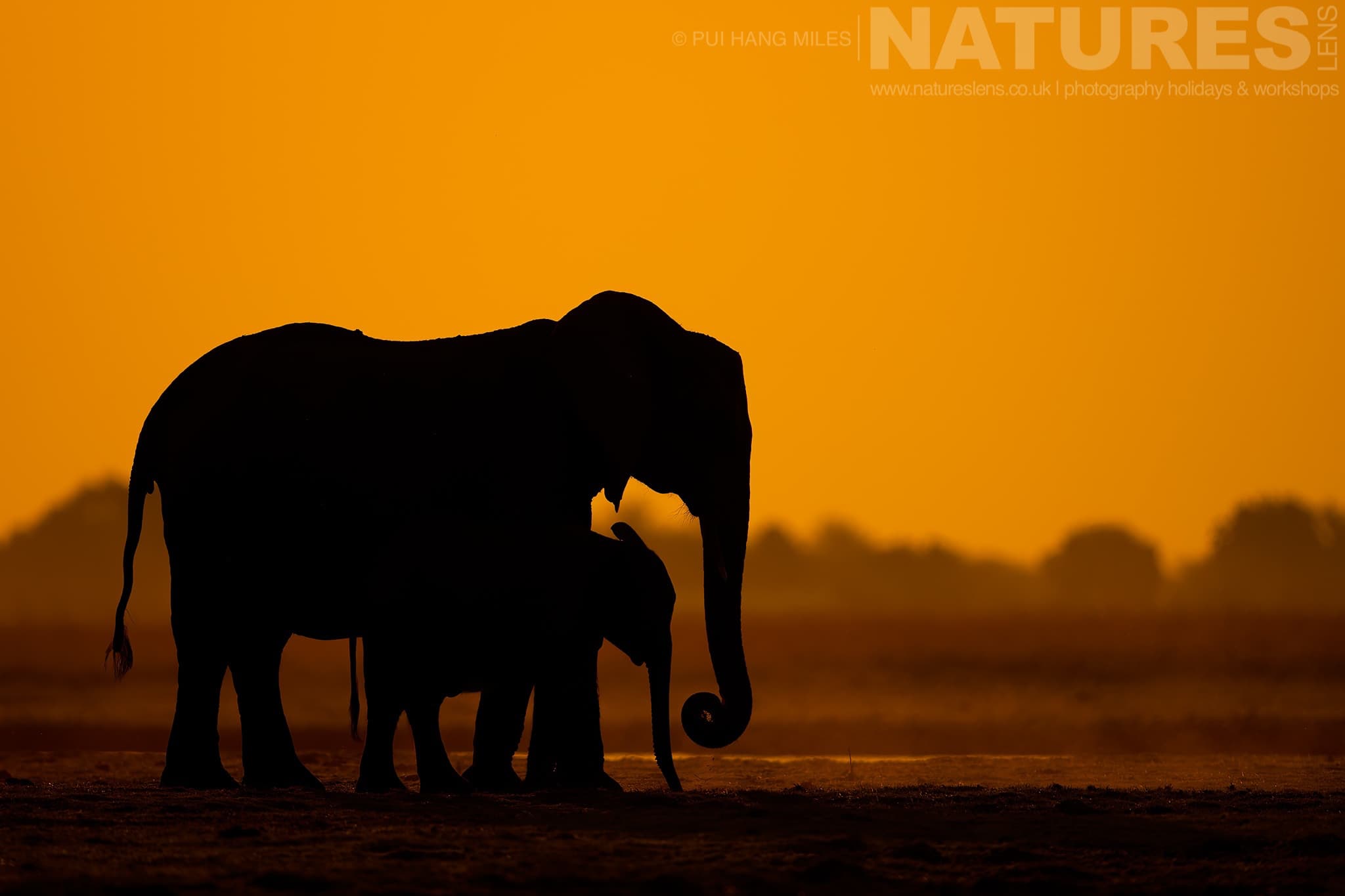 Mother & calf elephant silhouettes at sunset captured during our Wildlife of the Chobe River photography holiday