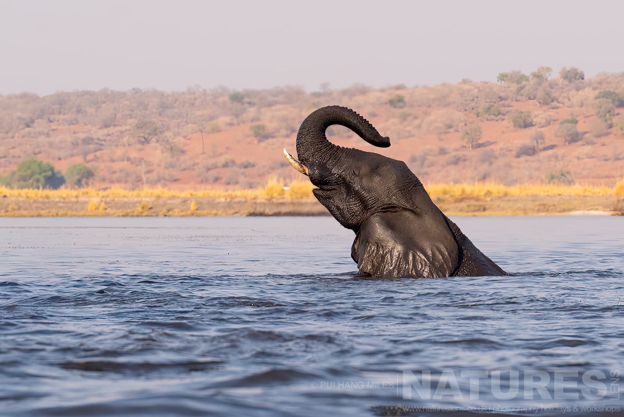 An elephant bathing in the river during day captured during our Wildlife of the Chobe River photography holiday